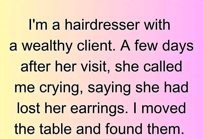 Later, as I was styling her hair, I noticed one was missing. My heart just dropped. We looked everywhere. Under the chair, in the capes, on the floor, even in the towel bins. Nothing. Her composure, usually so steadfast, started to crack. A tremor in her hands, a shadow in her eyes. It wasn’t just a lost item; it felt like a lost piece of herself. After an hour of frantic searching, she finally gave up. A single, silent tear traced a path down her cheek. “It’s fine,” she whispered, though her voice was anything but. “It’s just… I really loved them.” She paid, thanked me, and left, defeated.