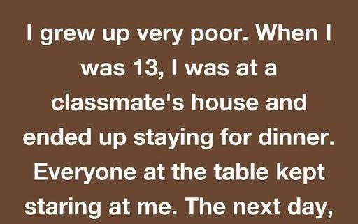 I was a very poor child. I ended up staying for dinner at a classmate’s house when I was thirteen. Everybody at the table continued to look at me.
