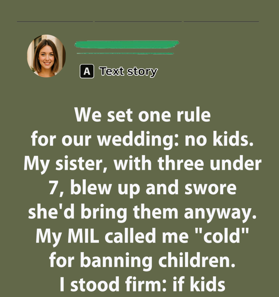 Then my future mother-in-law chimed in. She said banning kids was ‘cold’ and would make the wedding feel ‘unwelcoming.’ I asked her if she wanted my first dance drowned out by a toddler tantrum. That ended the conversation — but the tension grew.