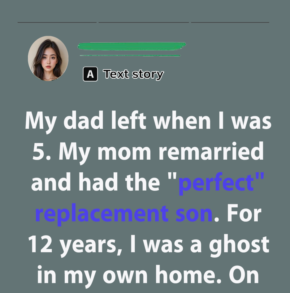 • My dad left when I was 5. My mom remarried and had the “perfect” replacement son. For 12 years, I was a ghost in my own home. On my 18th birthday, I packed a bag and left.