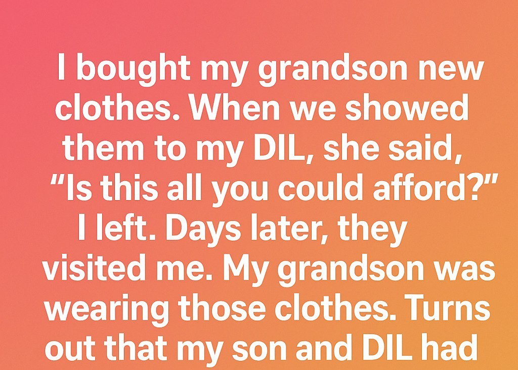 And my “charity clothes,” the ones she deemed an embarrassment, were the only thing standing between my grandson and the freezing cold floor.