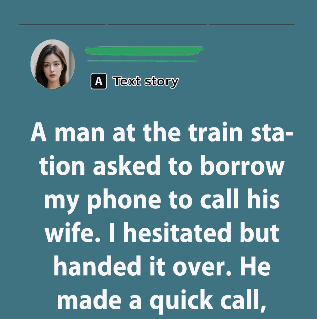 She hugged me. I’d gone to return a box and ended up returning a memory. - A man at the train station asked to borrow my phone to call his wife. I hesitated but handed it over. He made a quick call, thanked me, and left.