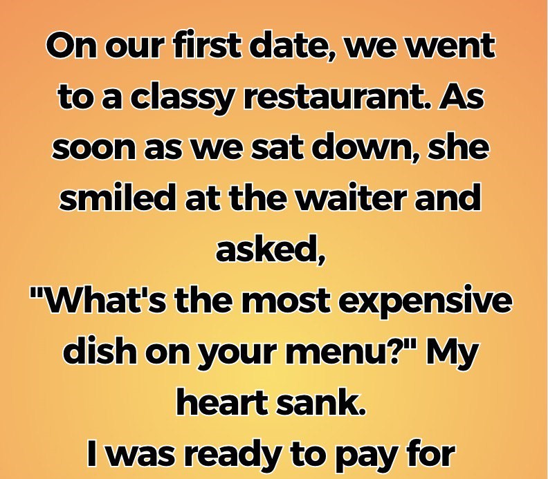 Years have passed since that night, and she’s no longer just the woman I had dinner with — she’s my wife. Our life together has been filled with laughter, challenges, adventures, and quiet moments that mean more than any grand gesture ever could. And still, every so often, when we go out to eat, she’ll look at the waiter with that same playful glint in her eyes and ask, “What’s the most expensive thing on your menu?”