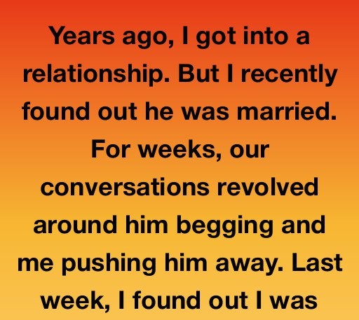 Years ago, I got into a relationship. But I recently found out he was married. For weeks, our conversations revolved around him begging and me pushing him away.