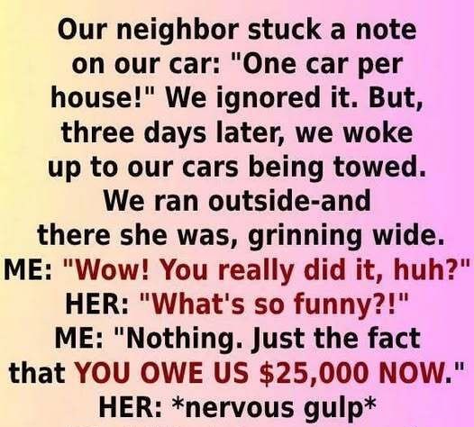 One morning, Mr. Hensley called the HOA and demanded they tow her second car.