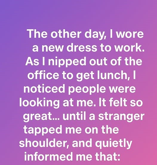 By the time I sat back at my desk, the incident had turned into a warm story to tell rather than an awkward memory. The tag mishap reminded me that confidence isn’t about perfection—it’s about laughing through the awkward moments and appreciating the little kindnesses life throws our way.