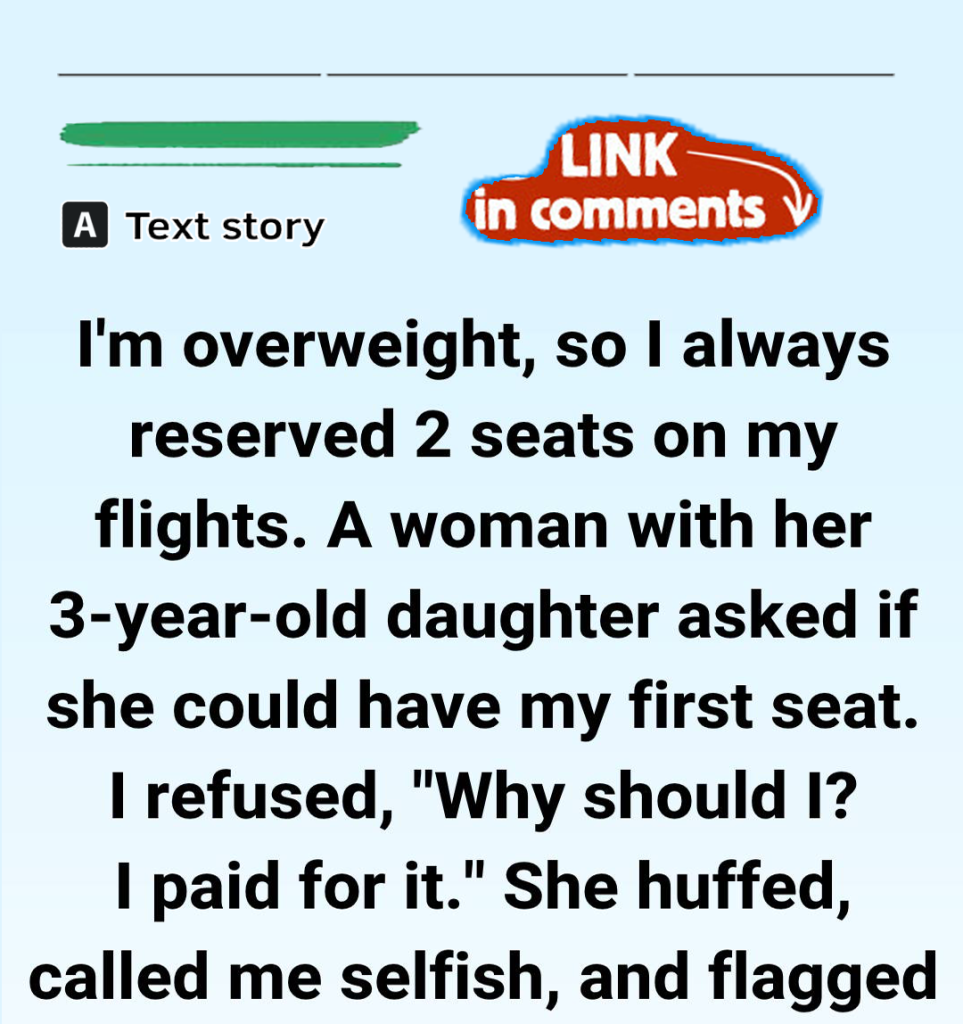 Here’s what happened to me on a recent flight, and I genuinely need opinions on whether I was in the wrong. I’m on the heavier side, and after years of traveling, I’ve learned that for longer flights, it’s better for everyone if I purchase an extra seat. It’s expensive, yes, but it allows me to travel comfortably without intruding on anyone’s space.