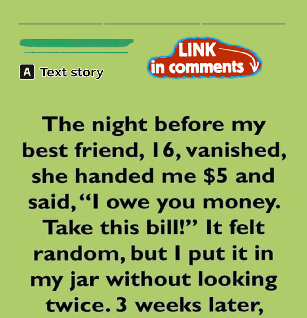 The night before my best friend disappeared, she handed me a $5 bill and said, “I owe you money. Take this bill!” It seemed random — just another one of her quirky gestures — so I smiled, took it, and dropped it into my savings jar without giving it another thought. I had no idea that moment would become the last time I ever saw her.