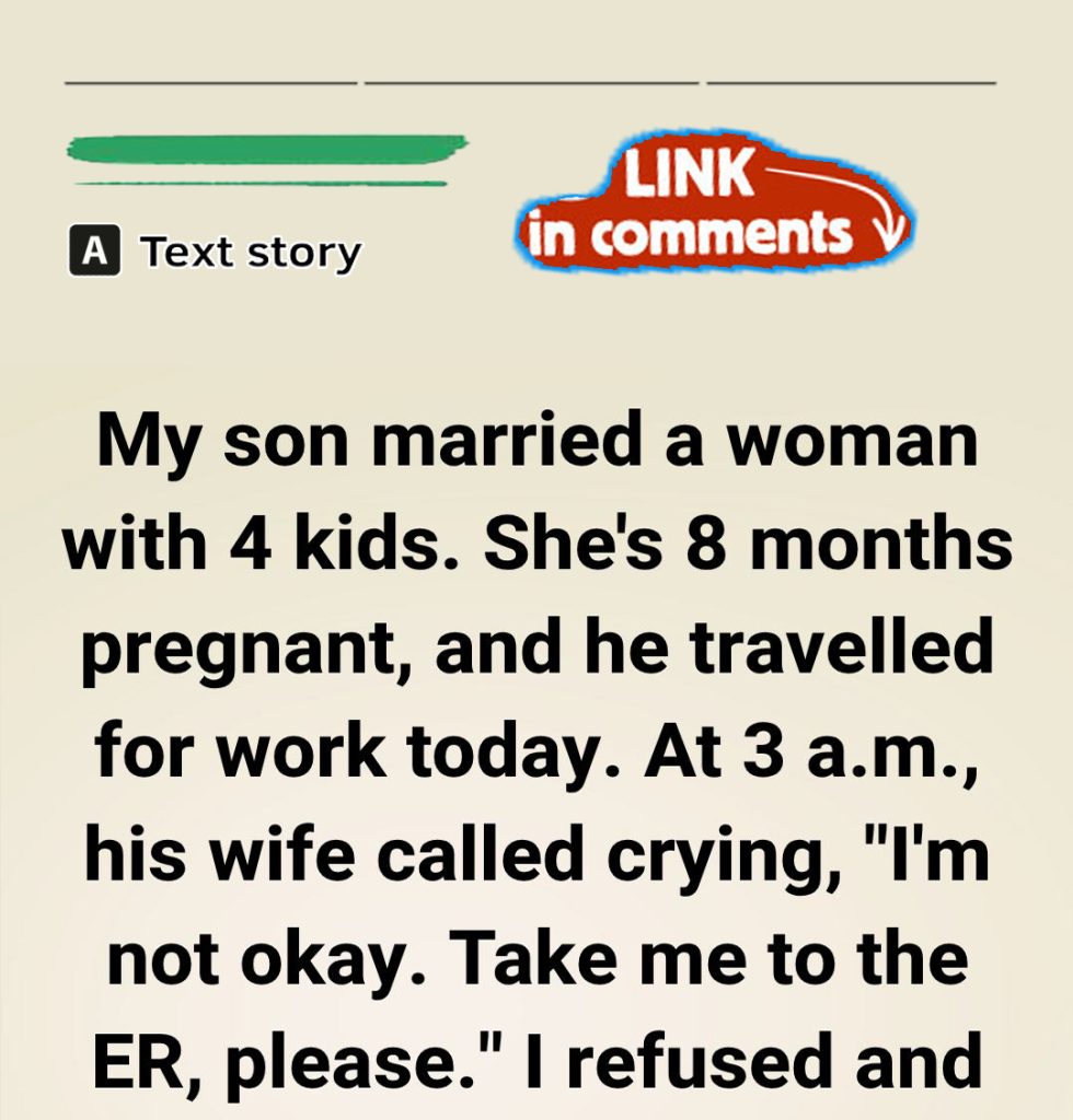 My son married a woman who already had four children. She’s eight months pregnant now, and earlier today he left for a work trip. At around three in the morning, I was jolted awake by a call from his wife.