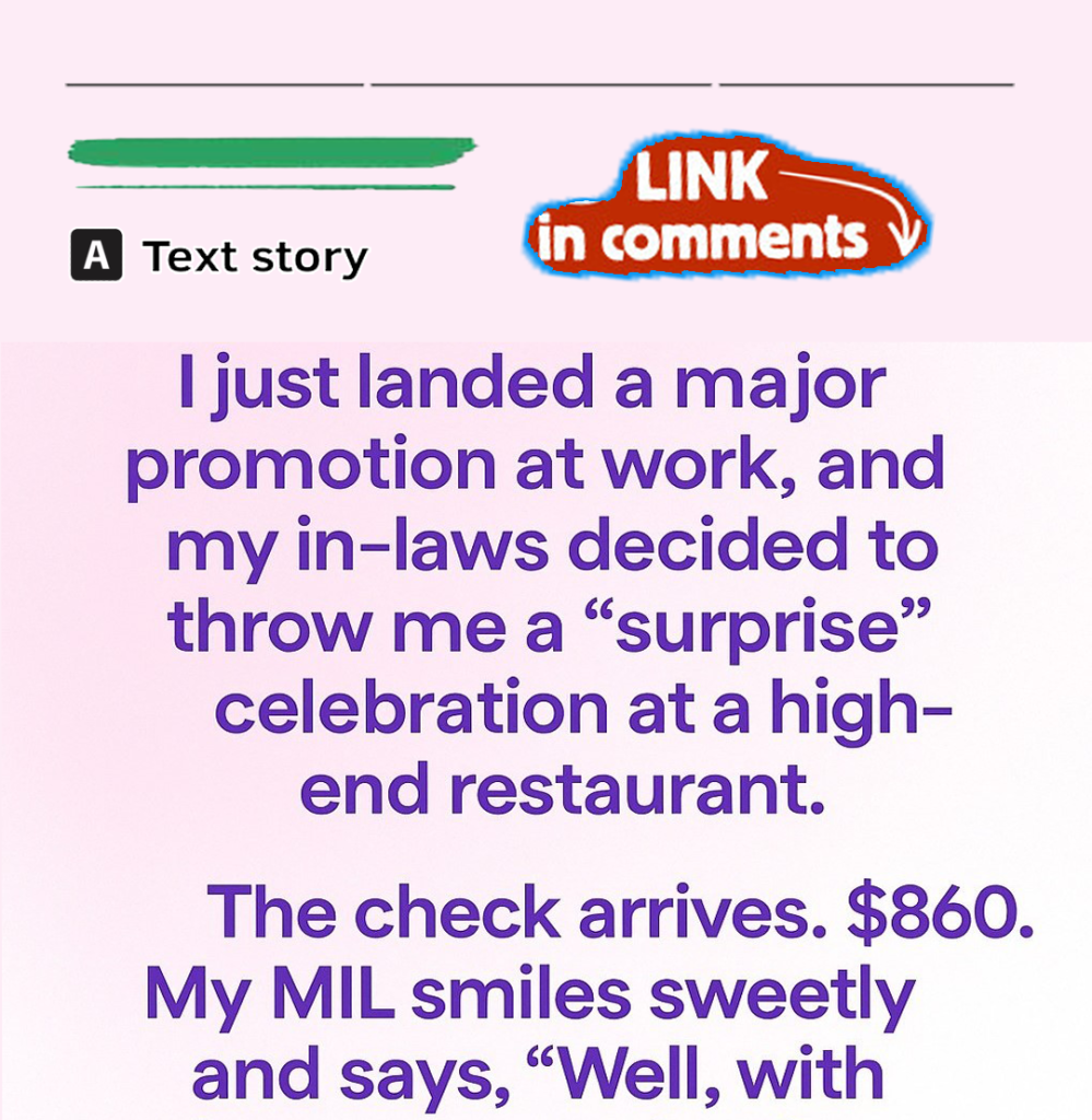 I just landed a major promotion at work, and my in-laws decided to throw me a “surprise” celebration at a high-end restaurant. It felt thoughtful at first, and I appreciated the gesture—until the check arrived. The total was $860.