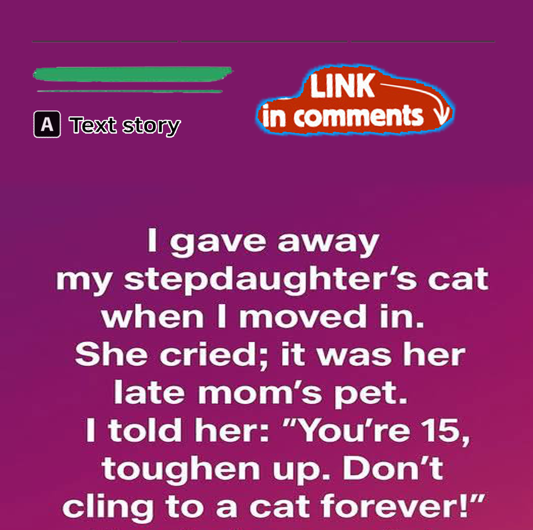 gave away my stepdaughter’s cat when I moved in. She cried; it was her late mom’s pet. I told her: “You’re 15, toughen up.
