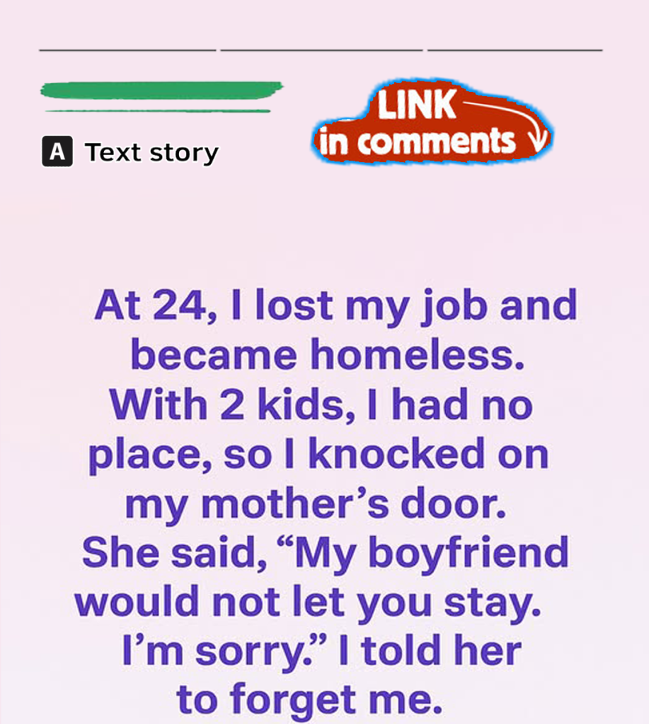 At twenty-four, my world crumbled. I lost my job, my savings, and the roof over our heads. With two little ones beside me, I knocked on my mother’s door, praying she’d let us in.