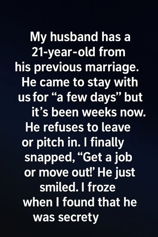 My husband has a 21-year-old from his previous marriage. He came to stay with us for “a few days,” but it’s been weeks now. He refuses to leave or pitch in.