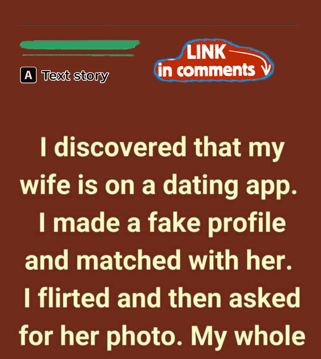 I discovered that my wife is on a dating app. I made a fake profile and matched with her. I flirted and then asked for her photo.