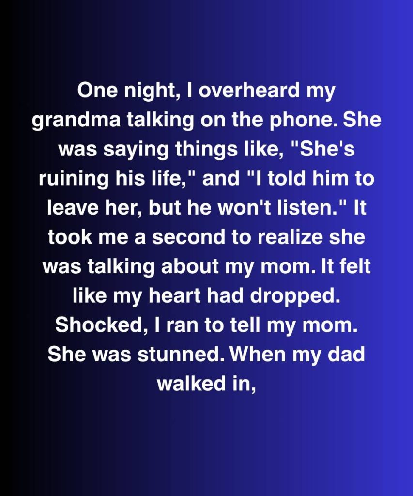 Even though I was 23, I felt like a kid again. He finally acknowledged that Grandma had been talking about Mom to him behind her back for months. “She thinks you’re not the right fit for me anymore,” he remarked cautiously, as if navigating a minefield.