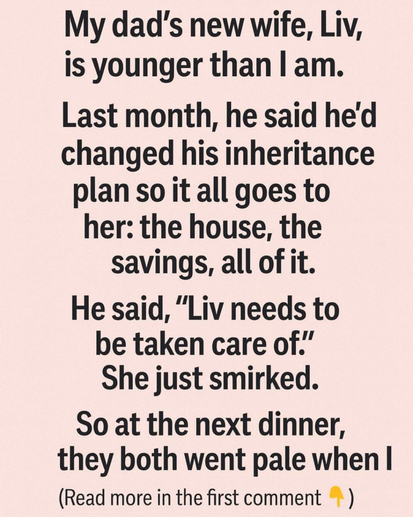 A week later, we met for dinner—Dad, Liv, and me. The air was tight from the start.