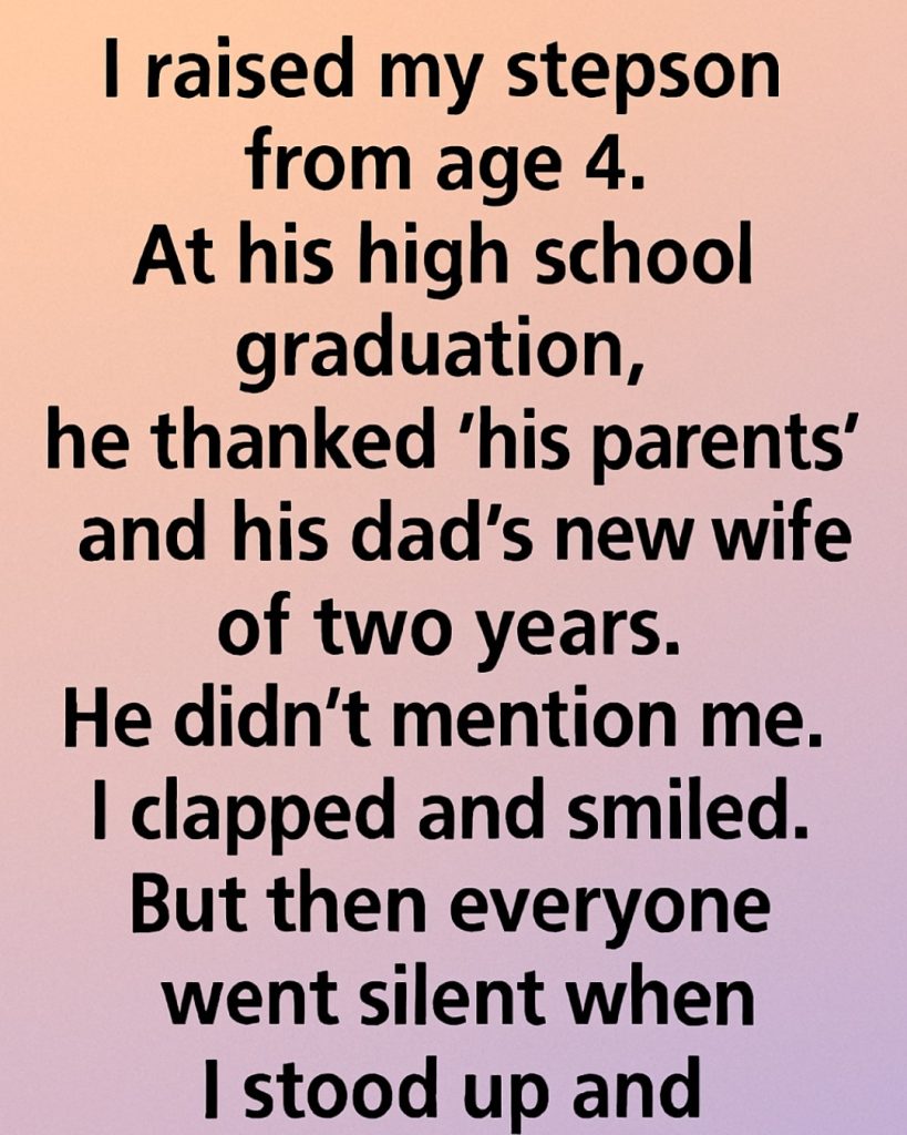 When my stepson walked across the stage and accepted his diploma, I clapped just like everyone else—warm, proud, and quietly content. I didn’t mind that he didn’t mention me in his thank-you speech. Love doesn’t keep score.
