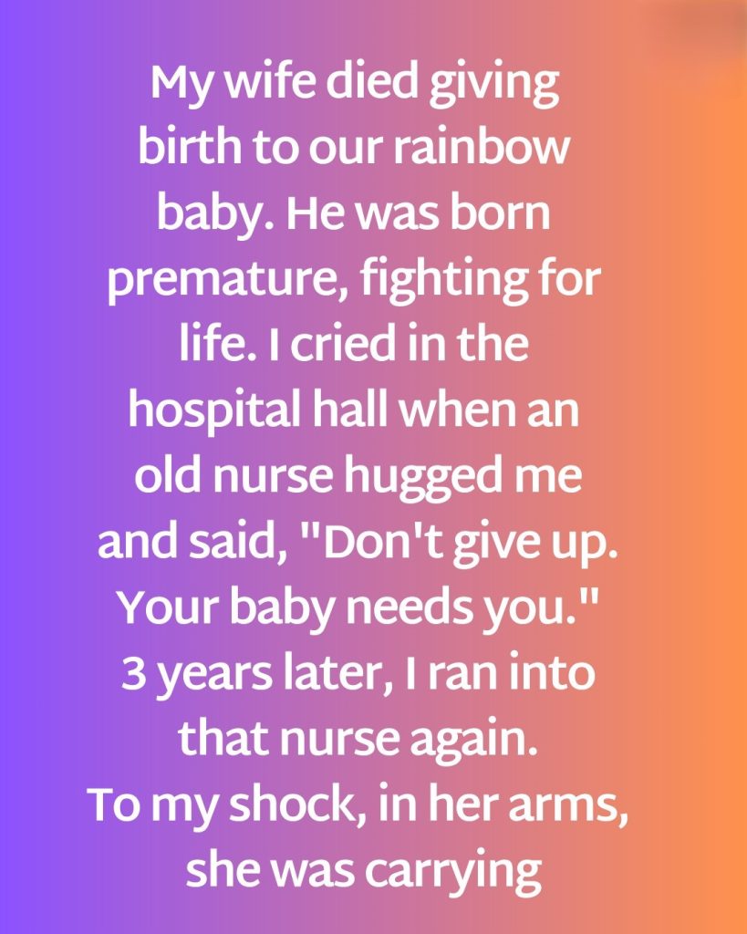 In the darkest moment of my life, when grief and fear collided in a way I could barely breathe through, a single act of kindness kept me standing. My wife had passed away giving birth to our rainbow baby, and my son arrived early, fighting for every fragile breath. I remember collapsing in the hospital hallway, overwhelmed and lost, when an older nurse gently wrapped her arms around me and whispered, “Don’t give up.