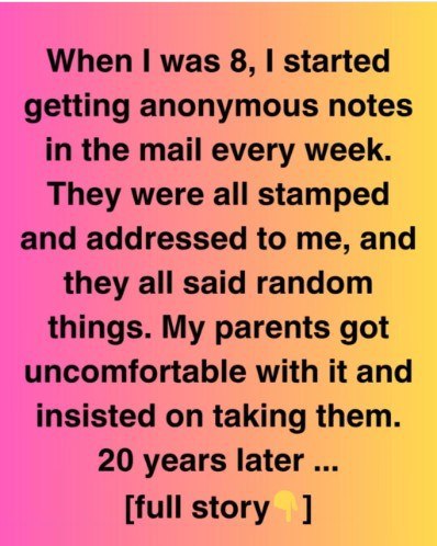 Beginning when I was eight years old, I began receiving anonymous messages in the mail on a weekly basis. There was a stamp on each one of them, and they were all addressed to me. Some of them stated weird things. My parents were uneasy about it and insisted on bringing them with them on their trip.