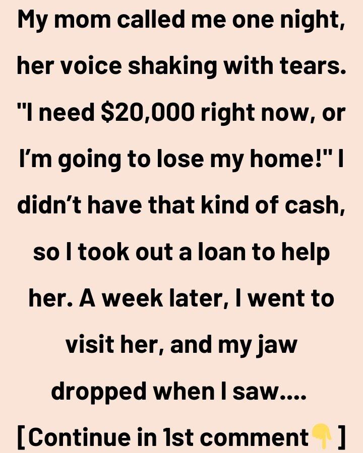 That night, my mom told me she needed $20,000—immediately—or she’d lose her home. I didn’t have that kind of money, but that didn’t matter. I went to the bank and took out a loan. Helping her felt like the only option. There was no second-guessing. It was my mother.
