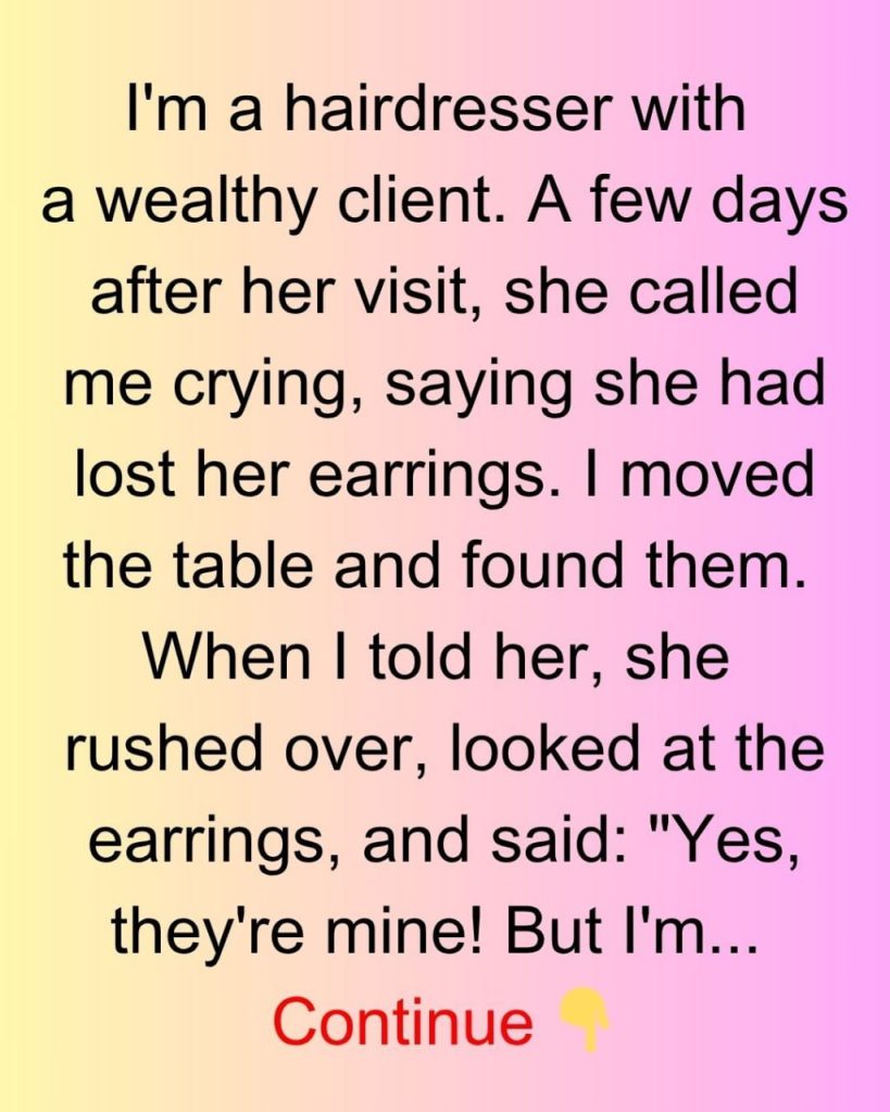 “Keep them,” she said. Just like that. My jaw almost dropped. “A thank you for your honesty, for finding them. They… they hold too many memories for me anyway.” Her voice was soft, almost a sigh. Too many memories? What kind of memories? I stammered, tried to refuse, but she insisted. “Please. Consider it a gift. They’d look beautiful on you.” And before I could argue further, she just smiled, thanked me again, and walked back to her stylist.