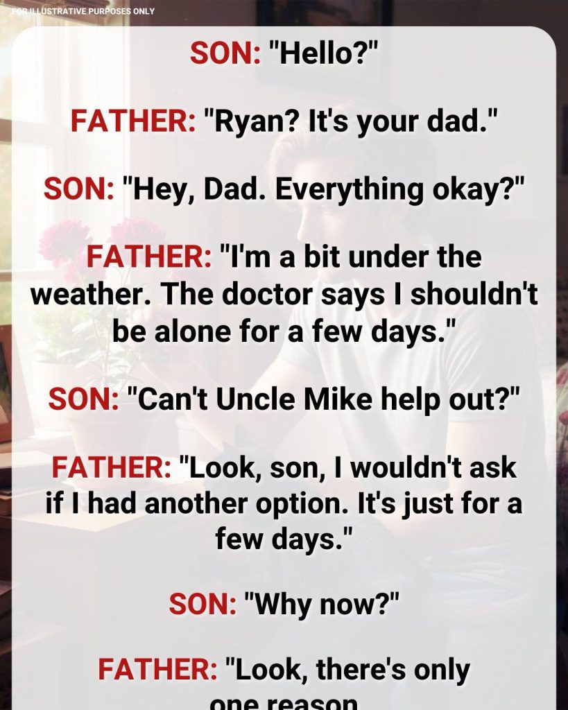 “Not really,” his father, Larry, answered, and something in his tone made Ryan straighten. “I’m a bit under the weather. Nothing serious,” he rushed to add, “but the doctor says I shouldn’t be alone for a few days.”