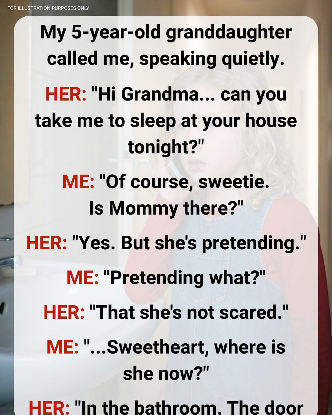 My granddaughter never calls me on her own. That’s why, when her tiny voice whispered that her mom was “pretending she’s not scared,” I felt a jolt of dread before she even finished the sentence. And what I discovered when I rushed to their house left me frozen in the doorway, heart pounding so hard it almost hurt.