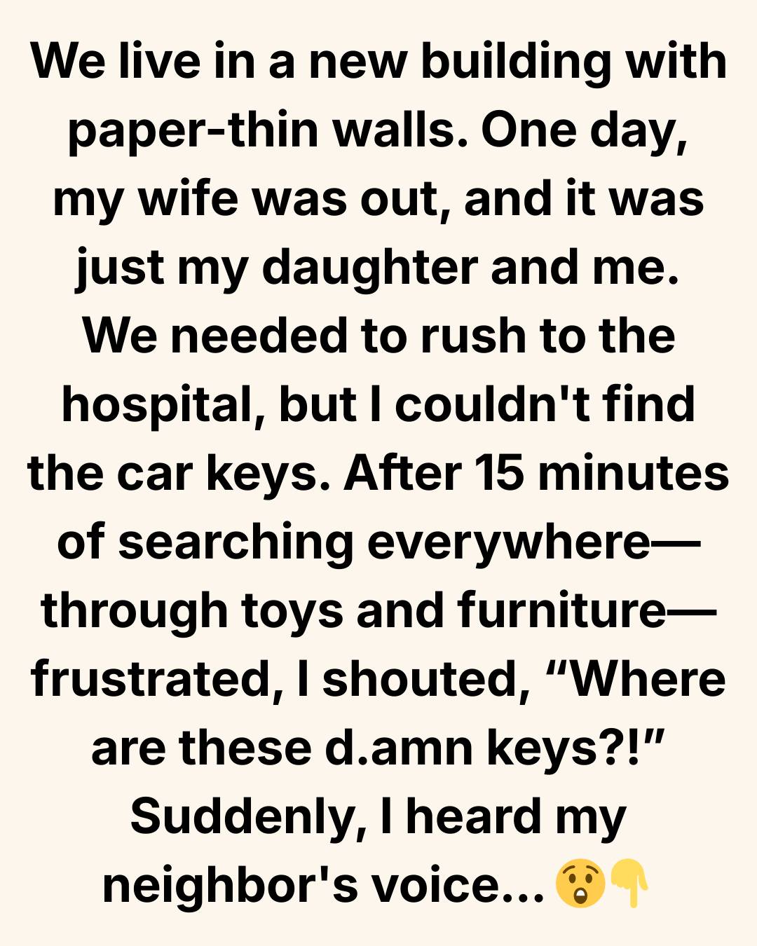 We had only lived in the new apartment building for three months, but one thing was already painfully clear: the walls were paper-thin. You could hear everything — footsteps, conversations, even someone sneezing two floors up. Still, nothing prepared me for the way those thin walls would save us one hectic afternoon.