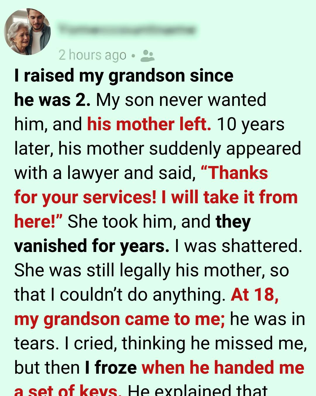 I raised my grandson from the time he was two years old. My son never wanted him, and his mother disappeared without a trace. I became his whole world, and he became mine. I cooked his meals, held him through nightmares, and watched his tiny hands grow steady and strong. I thought our little life together would go on forever.