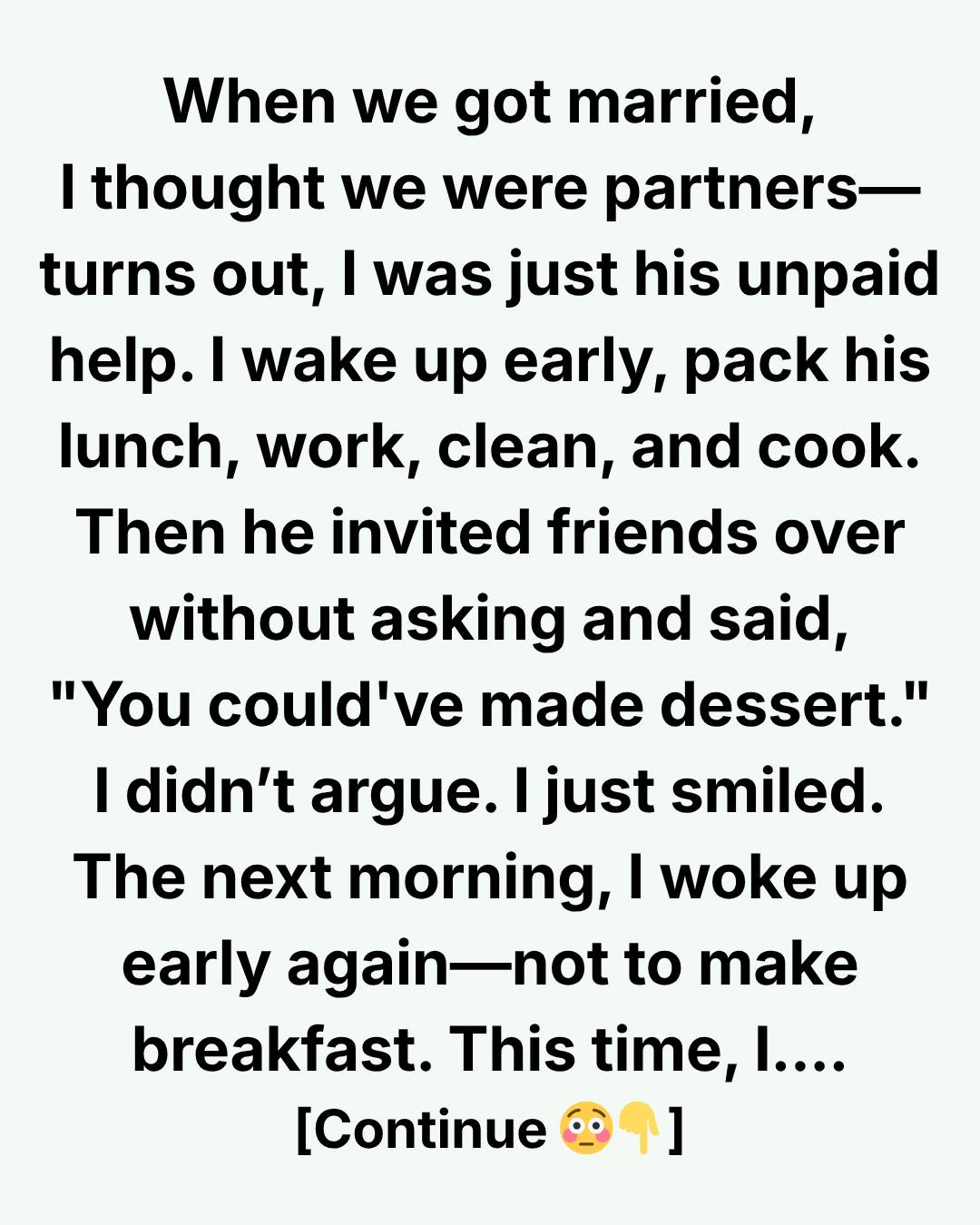 Every morning, I woke up before the sun just to pack his lunch. I worked full-time, rushed home, cooked dinner, folded laundry, wiped counters, washed dishes… and still heard him say, “You never do enough around here.” That sentence became the background noise of my life — quiet, constant, exhausting.