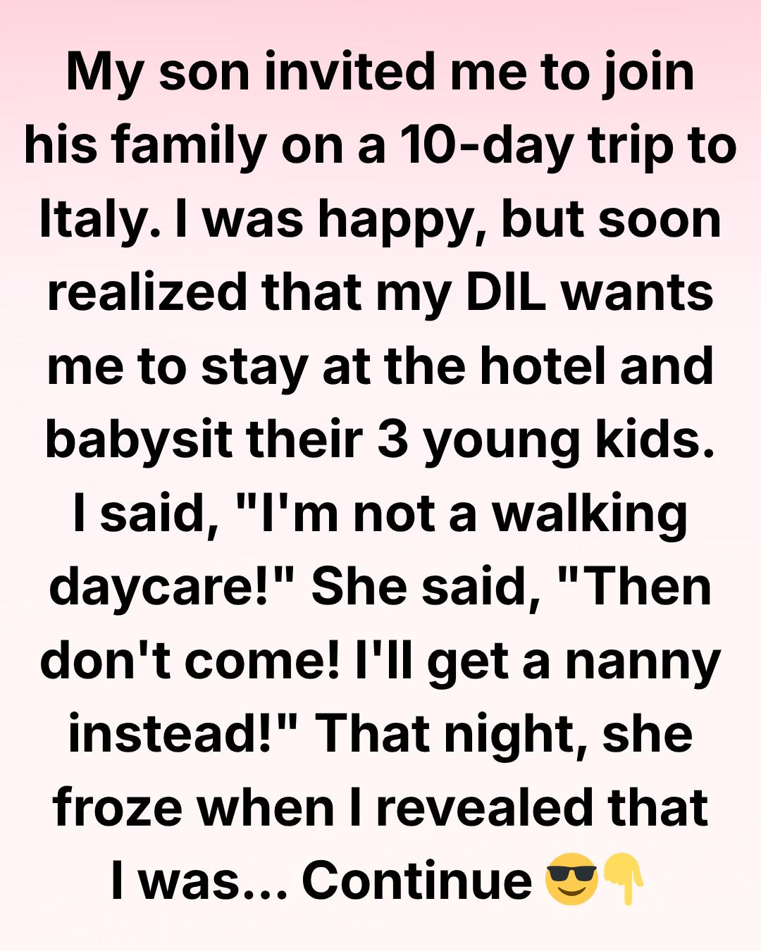 Now, I fully intend to go on this trip, enjoy Italy on my own terms, and keep a respectful distance from them. I don’t want drama—I just want peace. And I want to show, mostly to myself, that I’m not only a grandmother, but a whole person with her own right to rest, joy, and adventure.