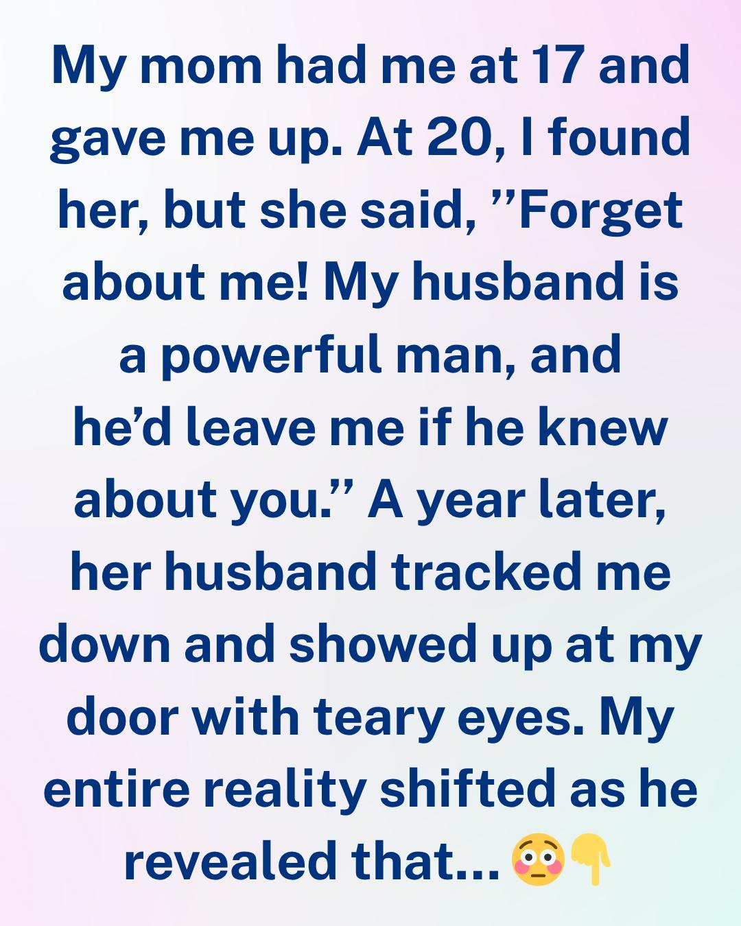My mother had me when she was just seventeen. Too young, too overwhelmed, she gave me up and walked out of my life before I could even form a memory of her. I grew up wondering who she was, if she ever thought of me, if she regretted leaving. When I turned twenty, I finally gathered the courage to find her. I imagined a tearful reunion, a long hug, maybe even an apology.