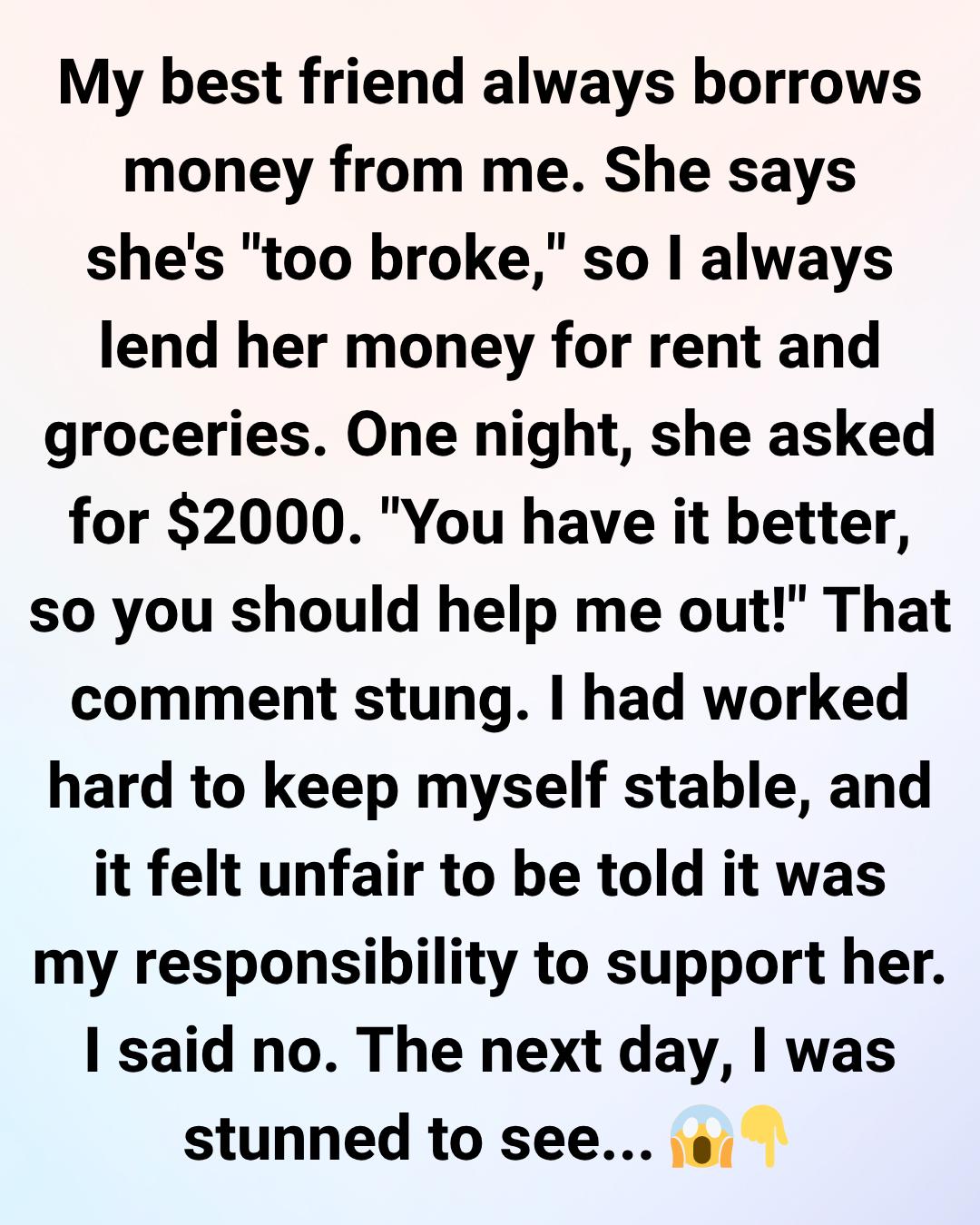 I never imagined that money could destroy a friendship, but lately, that’s exactly what seems to be happening. My best friend and I have been close for years, and I’ve always tried to be there for her. Whenever she said she was broke, I’d quietly step in—covering her rent, groceries, or small bills without asking questions. At first, it felt good to help someone I cared about, but over time, it stopped being an act of kindness and started becoming a pattern—an expectation.