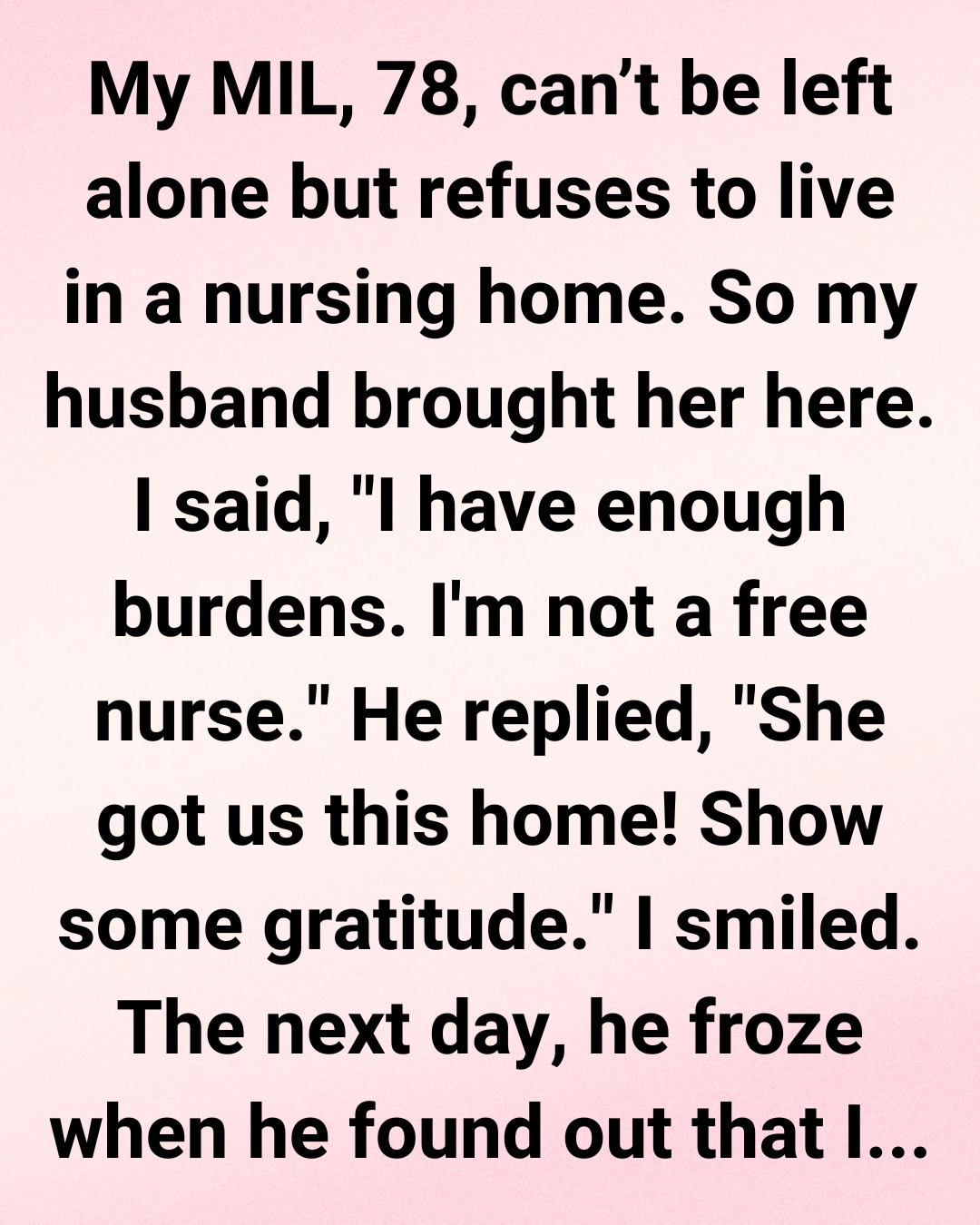 I didn’t argue further. Instead, I forced a smile and quietly took care of her that first day. But that night, when my husband was asleep, I silently went into the closet and began packing my things.