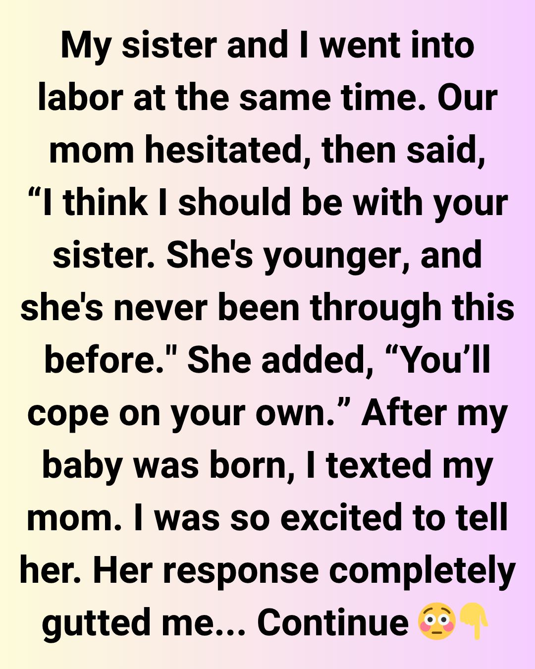 That was the first time I felt like I was second on the list. I told her I understood, and she hung up. I gave birth to a beautiful baby girl. As soon as she was cleaned up and in my arms, I texted my mom to let her know. I was so excited to tell her.