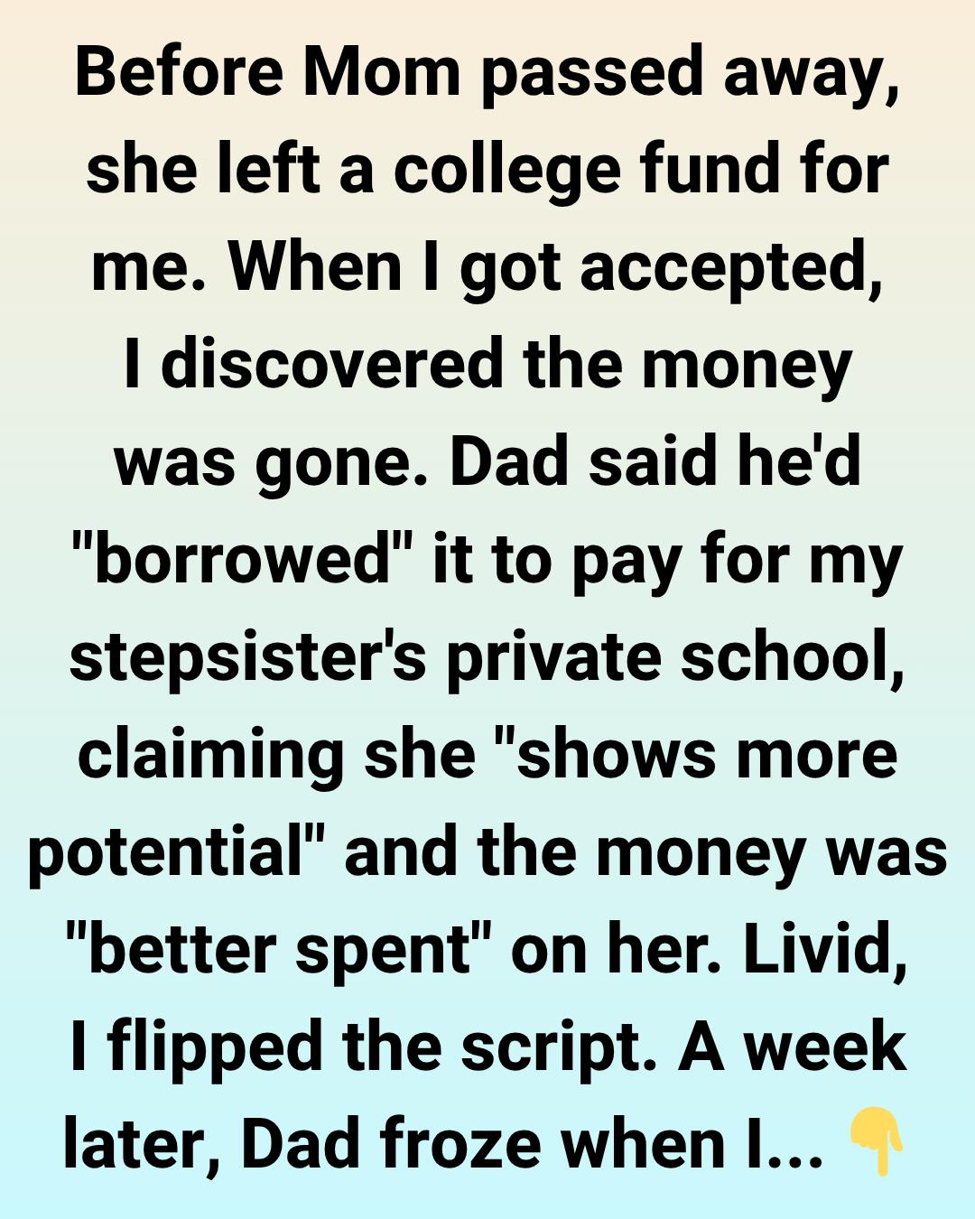 My dad eventually sat me down and explained that he had “borrowed” from my college fund to help pay for my stepsister’s private school tuition and academic programs. According to him, it was a necessary decision because she “shows more potential” and is “a brighter student” who “deserves every opportunity to succeed,” so the money was “better spent” on her. He even said it would be a “waste” not to invest in her future, implying that mine wasn’t worth the same.