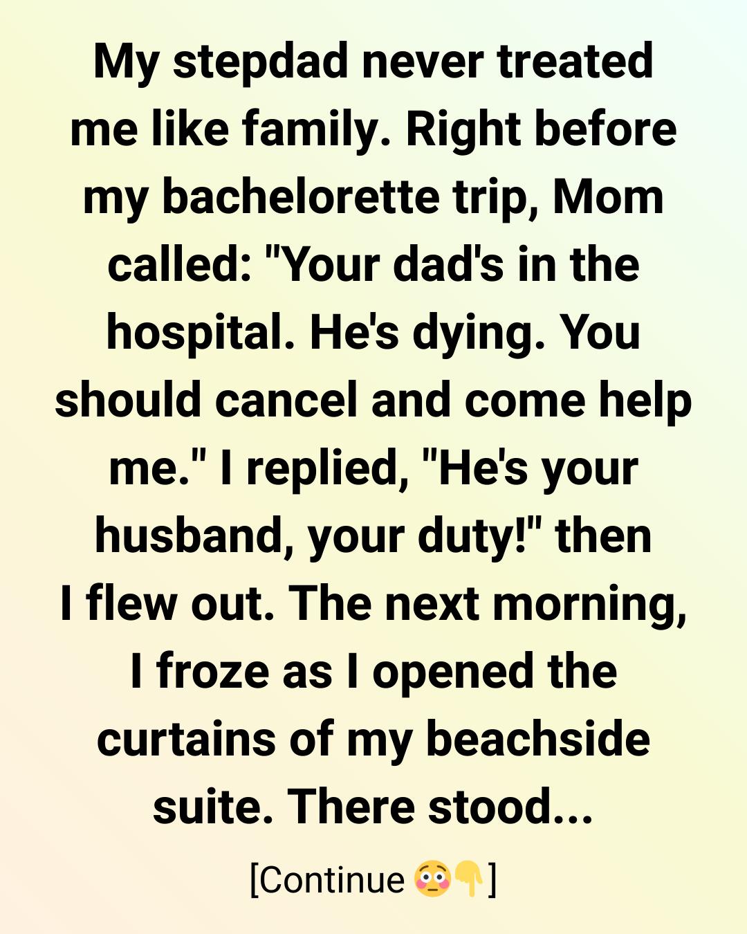 My stepdad never treated me like family. Right before my bachelorette trip, Mom called: “Your father’s in the hospital. He’s dying. You should cancel and come help me.”