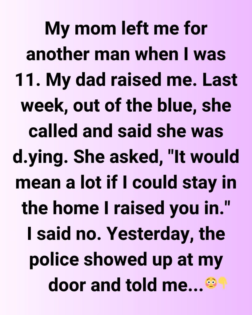 My mom left me for another man when I was 11, so my dad raised me alone. Now I’m 29, my dad’s gone, and the house is mine. Last week, my mom called out of nowhere.