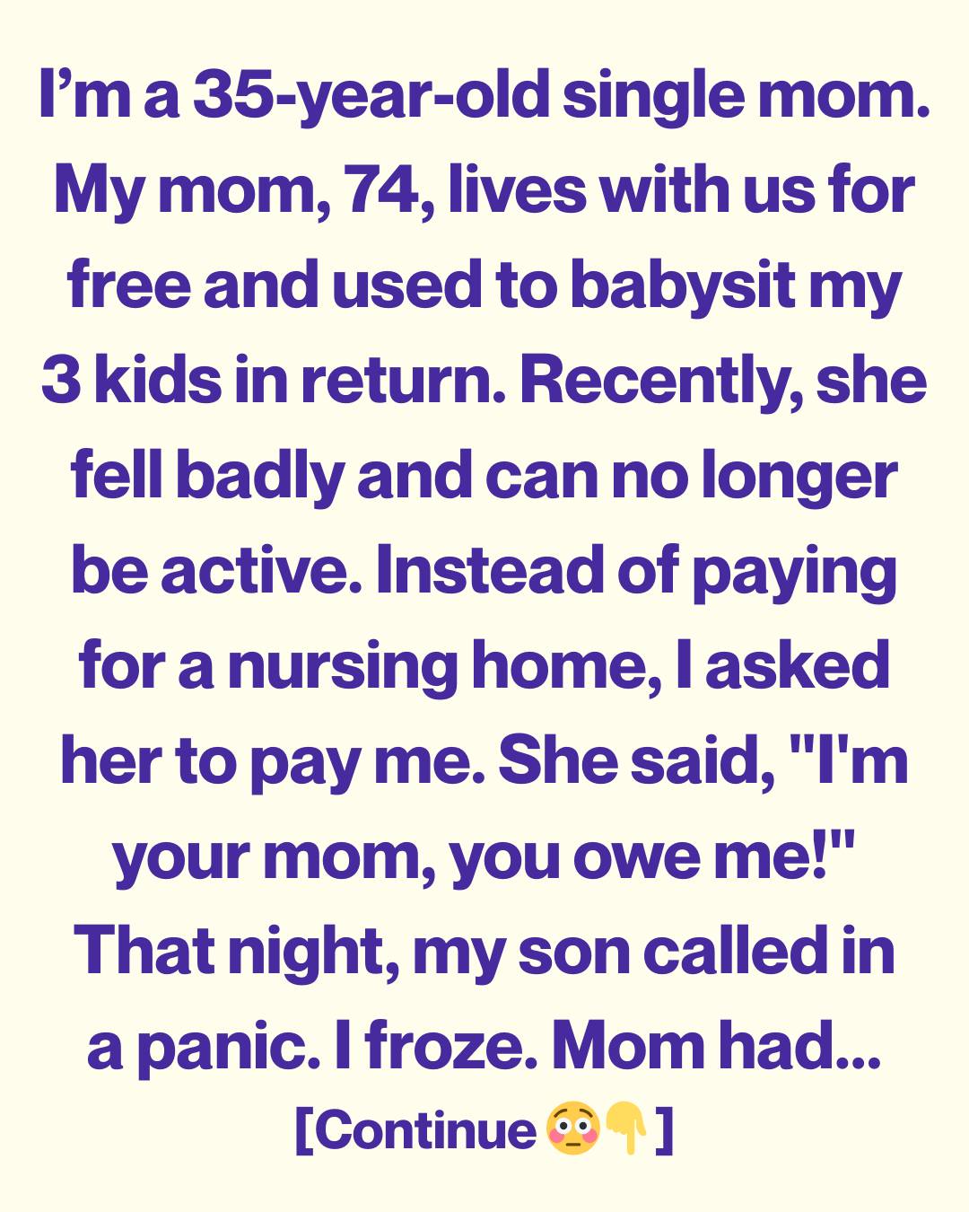 When she refused the idea of a nursing home, I tried to find a middle ground. I gently suggested she contribute financially if I was going to become her full-time caregiver. I wasn’t trying to punish her—I was trying to survive. But she exploded, shouting, “I’m your mother—you owe me!”