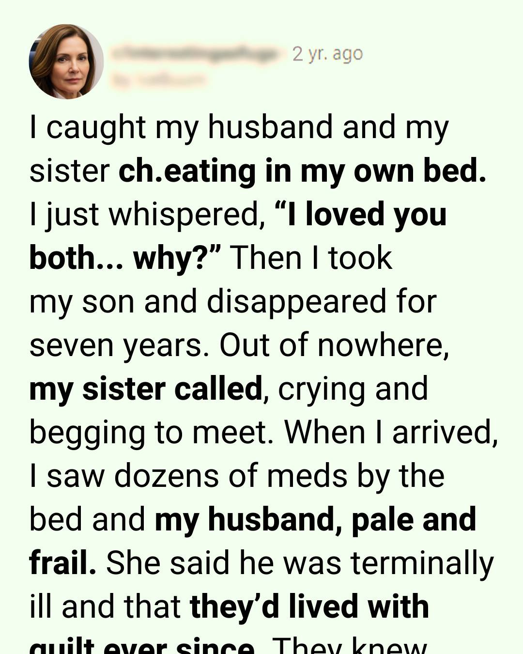 My sister stepped beside me, hands shaking. “He’s terminally ill,” she whispered. “It started two years ago. We’ve been living with guilt ever since the day you left. We know how much you struggled, and we never helped. We should have. We saved everything we could for your son… for his future. His education. His life.”