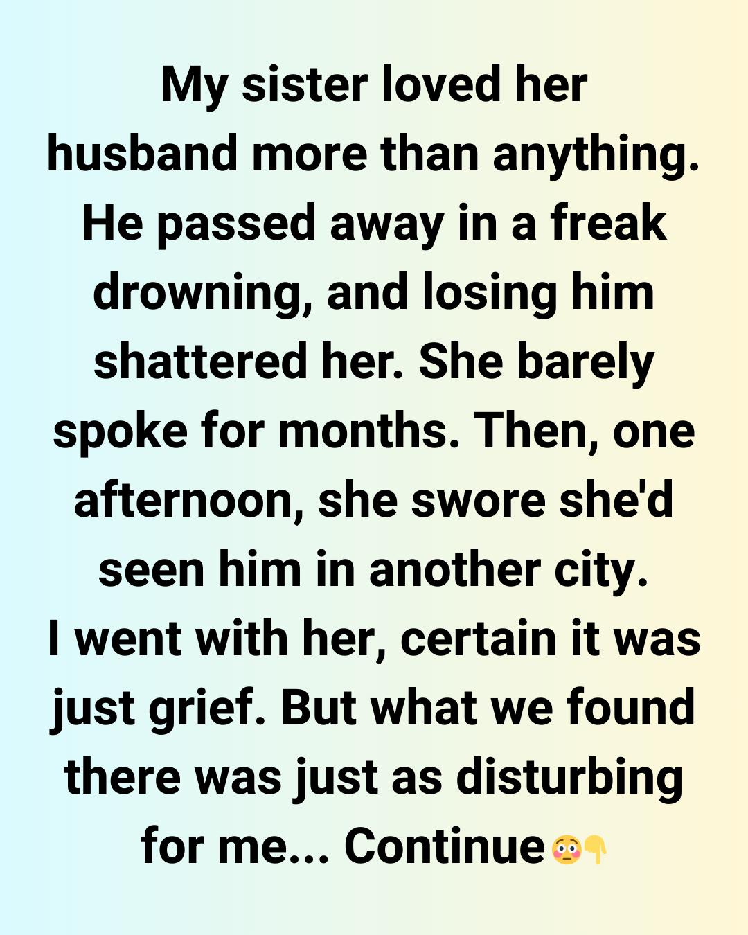 My sister loved her husband more than anything. He passed away in a freak drowning, and losing him shattered her. She barely spoke for months. Then, one afternoon, she swore she’d seen him in another city. I went with her, certain it was just grief. But what we found there was just as disturbing for me.