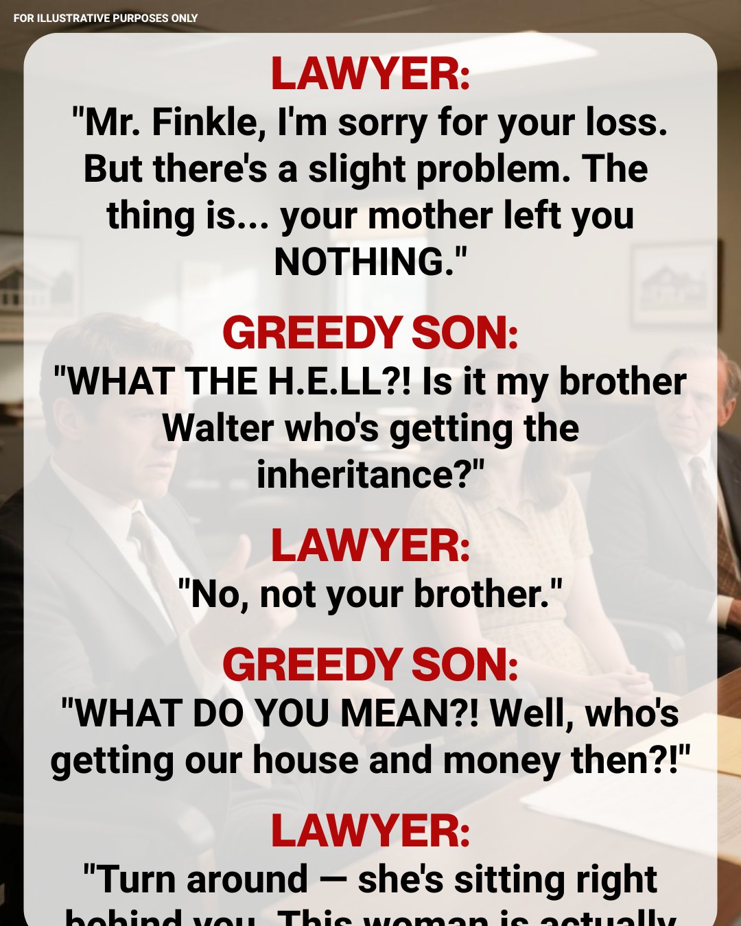 But Mr. Goldberg’s expression didn’t match their excitement. He looked at them sternly. “Calm down. Your mother valued Grace and Katherine very much. You need to respect them. They are part of this will too.”