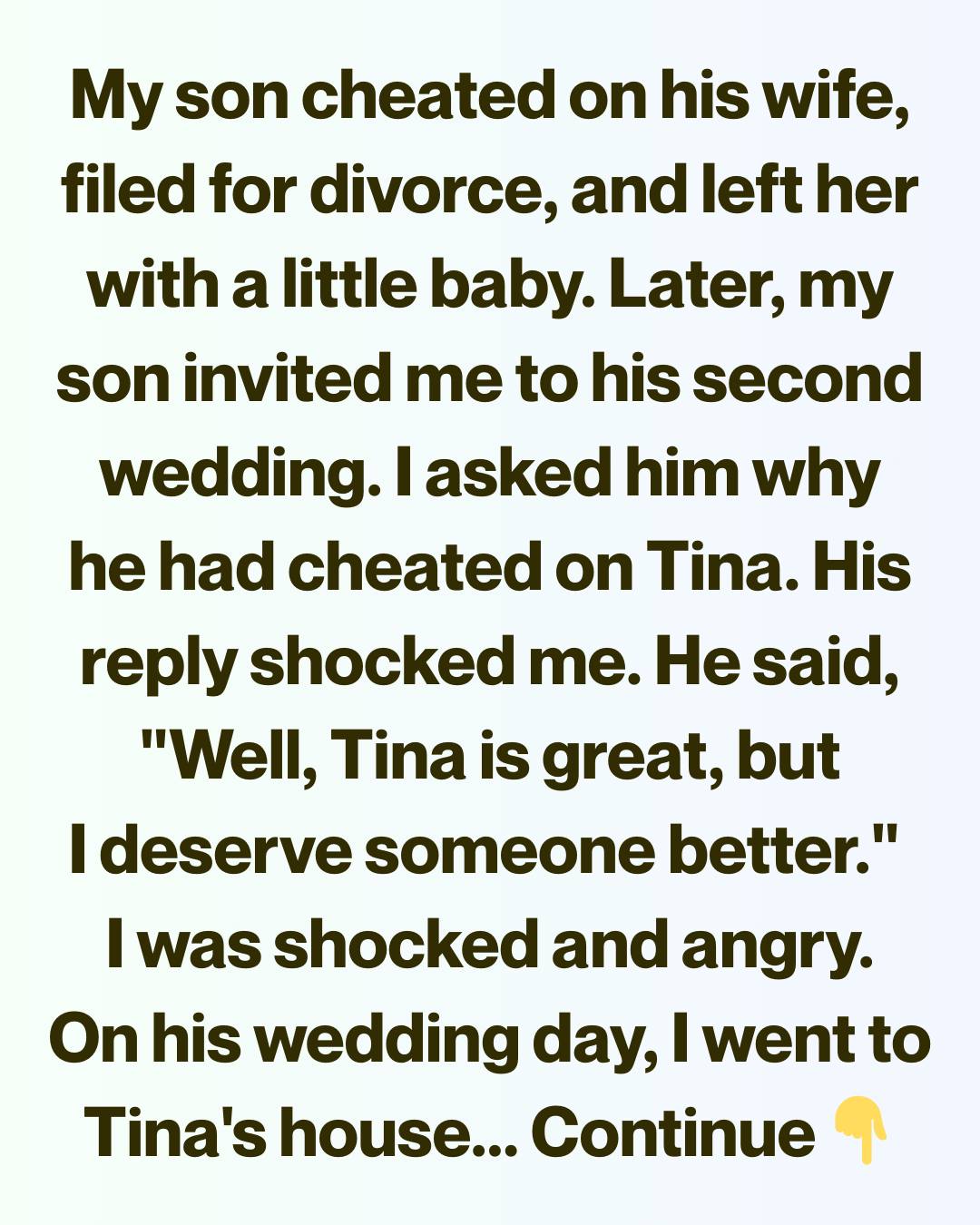 On the day of his wedding, my husband and I drove somewhere else entirely: to Tina’s doorstep. She answered holding her crying baby, her face pale with exhaustion. The room she rented was old, cramped, and unbearably quiet except for the baby’s wails.