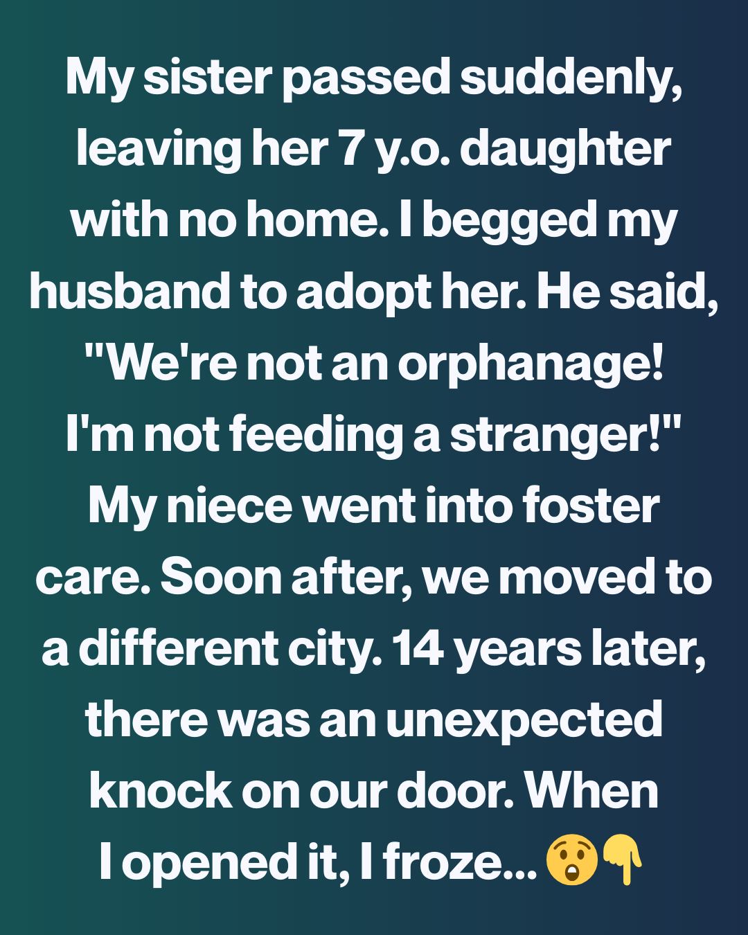 My sister’s death shattered something inside me. One moment she was laughing on the phone with me, and the next I was being told she was gone—just like that. She had been a single mother, doing everything she could to raise her little girl on her own. And suddenly, her seven-year-old daughter had no one left in the world but me.
