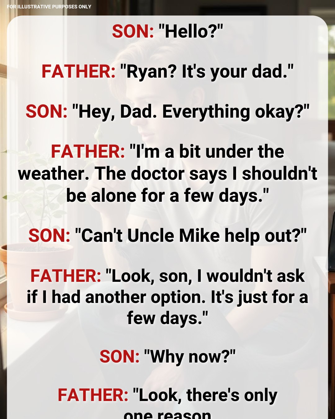 Then his phone vibrated on the nightstand. He ignored it at first, but when it buzzed again, he exhaled sharply and picked it up. His father’s name lit up the screen.