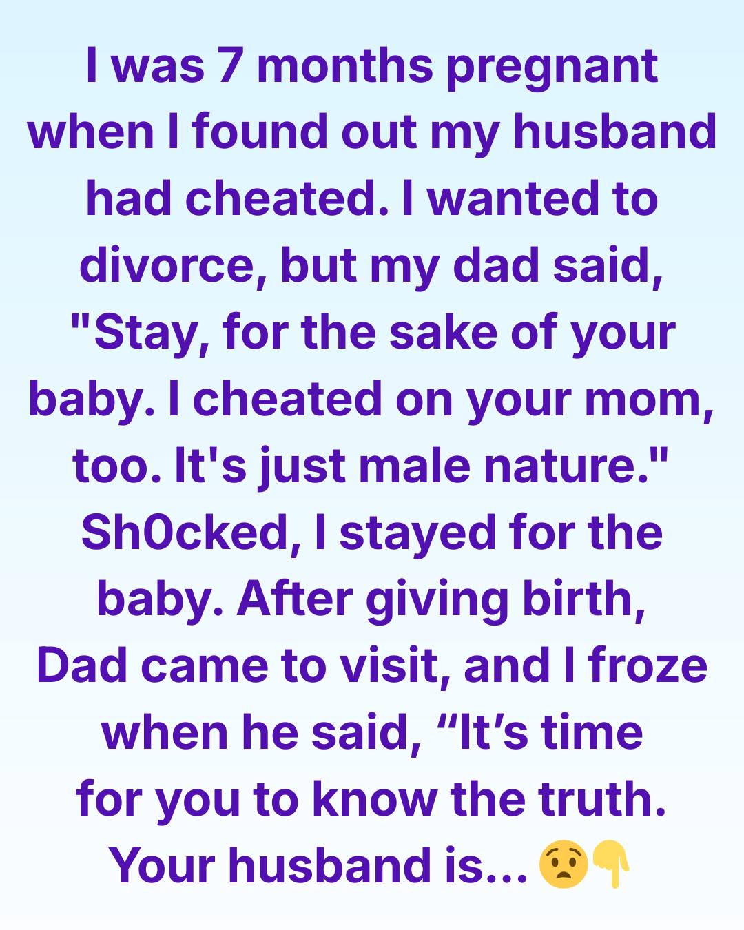 He spoke gently, as if choosing every word with care. “You should stay with your husband for the sake of your baby,” he said. “I also cheated on your mom when she was pregnant. It’s just male physiology, it doesn’t mean anything.”