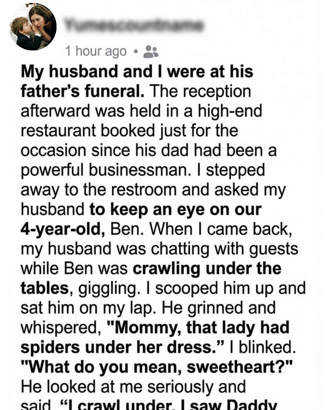 He tugged softly at the hem of my black dress, leaned in close, and whispered words so simple yet so shattering: