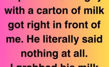 I was in grocery queue. A man with a milk carton approached me. He said nothing. I grasped and supported his milk. “Hey, man. I pointed my chin behind me …