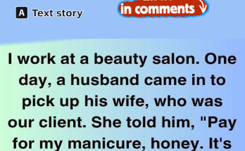 I work at a beauty salon. One day, a husband came in to pick up his wife, who was our client. She told him, “Pay for my manicure, honey. It’s …
