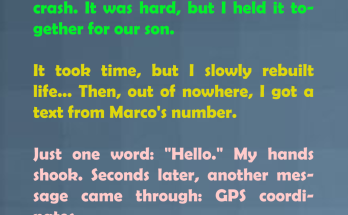 My husband died in a rainy-night crash, leaving me to raise our sick son alone. But weeks later, a single text from his number — just one word, “Hi” — …